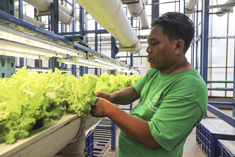 Seorang petugas memeriksa sayuran hidroponik di Ladang Farm, Lebak Bulus, Jakarta, Sabtu (25/10). Foto: Iqbal Firdaus/kumparanLadang Farm menjadi salah satu contoh pengembangan urban farming vertikal di tengah padatnya ibu kota. Foto: Iqbal Firdaus/kumparanLadang Farm yang berdiri di kawasan Lebak Bulus ini tercatat sebagai salah satu pertanian vertikal tertinggi di Jakarta yang mencapai 18 meter. Foto: Iqbal Firdaus/kumparanMeski beroperasi di area perkotaan, ladang ini mampu menghasilkan hingga dua ton setiap kali masa panen tiba. Foto: Iqbal Firdaus/kumparanSelain meningkatkan produktivitas pertanian di tengah keterbatasan lahan, Ladang Farm juga berperan dalam pemberdayaan masyarakat sekitar. Sejumlah warga dilibatkan dalam proses penanaman dan perawatan bibit sayuran. Foto: Iqbal Firdaus/kumparanFoto: Iqbal Firdaus/kumparanFoto: Iqbal Firdaus/kumparanFoto: Iqbal Firdaus/kumparan