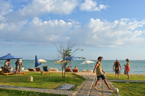 Di KEK Mandalika, wisatawan asing terlihat menikmati suasana pantai Kuta yang menjadi ikon pariwisata NTB. Kawasan ini juga dikenal sebagai tuan rumah ajang MotoGP Mandalika.