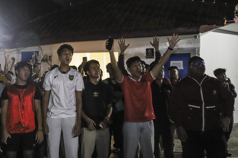 Begitu pertandingan dimulai, sorak-sorai langsung menggema. Para suporter berdiri, menyanyikan yel-yel khas "Garuda di Dadaku" dan "Indonesia Pasti Bisa", sembari melambaikan tangan ke arah layar lebar yang menayangkan laga secara langsung. Tidak kalah serunya, sejumlah pendukung timnas menyalakan flare berwarna merah menambah ketegangan saat menonton pertandingan tersebut.