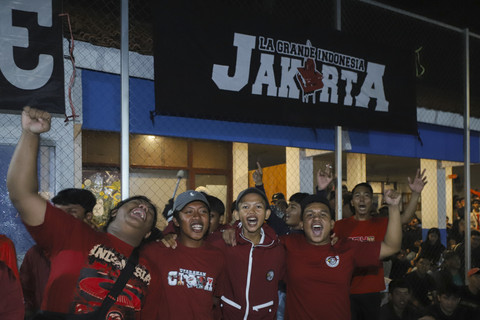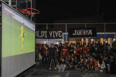 Euforia dukungan terhadap Tim Nasional Indonesia kembali menggema di kawasan Duren Sawit, Jakarta Timur, Kamis (9/10) malam. Ratusan suporter berkumpul dalam acara nonton bareng (nobar) laga ronde keempat Kualifikasi Piala Dunia 2026 zona Asia antara Timnas Indonesia melawan Timnas Arab Saudi. Foto: Darryl Ramadhan/kumparanAcara nobar ini diinisiasi oleh kelompok suporter setia Timnas Indonesia, La Grande Indonesia, yang dikenal aktif dalam berbagai kegiatan dukungan bagi skuad Garuda. Foto: Darryl Ramadhan/kumparanSejak sore hari, kawasan tersebut mulai dipadati penonton yang datang mengenakan atribut merah putih dari bendera kecil, syal, hingga jersey resmi timnas. Foto: Darryl Ramadhan/kumparanBegitu pertandingan dimulai, sorak-sorai langsung menggema. Para suporter berdiri, menyanyikan yel-yel khas "Garuda di Dadaku" dan "Indonesia Pasti Bisa", sembari melambaikan tangan ke arah layar lebar yang menayangkan laga secara langsung. Foto: Darryl Ramadhan/kumparanFoto: Darryl Ramadhan/kumparanFoto: Darryl Ramadhan/kumparan