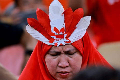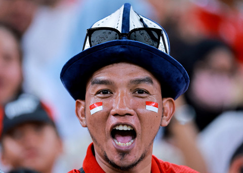 Timnas Indonesia melakoni laga kedua melawan Timnas Irak pada laga Grup B Ronde 4 Kualifikasi Piala Dunia 2026 di King Abdullah Sports City Stadium, Jeddah, Arab Saudi, Minggu (12/10) dini hari WIB. Foto: Stringer/REUTERSDukungan kembali hadir dari para suporter yang hadir nonton langsung di stadion. Mereka merupakan WNI yang berada di Arab Saudi maupun yang terbang langsung dari Indonesia. Foto: Stringer/REUTERSPara suporter hadir dengan memakai atribut berwarna merah dan meramaikan tribun King Abdullah Sports City Stadium. Foto: Stringer/REUTERSHasilnya, Timnas Indonesia harus puas menelan kekalahan 0-1 dari Irak. Hasil ini memastikan Indonesia gagal tampil di putaran final Piala Dunia 2026. Foto: Stringer/REUTERS