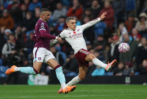 Burnley kalah saat melawan Arsenal pada pertandingan Liga Inggris di Turf Moor, Burnley, Inggris, Sabtu (1/11/2025).
