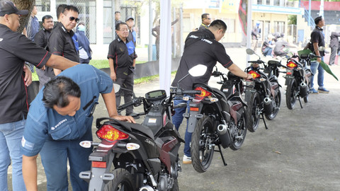 PT Suzuki Indomobil Sales 2W resmi meluncurkan motor Suzuki Satria Pro dan Suzuki Satria F150 di Sentul, Bogor, Sabtu (8/11/2025). Foto: Sena Pratama/kumparan