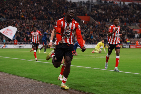 Selebrasi pemain Sunderland usai mencetak gol ke gawang Arsenal pada pertandingan Liga Inggris di Stadium Of Light, Sunderland, Inggris, Sabtu (8/11/2025). Foto: Scott Heppell/REUTERS