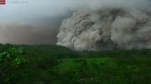 Muntahan material vulkanik membubung tinggi saat Gunung Semeru mengalami erupsi pada Rabu (19/11/2025).