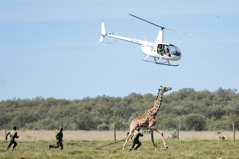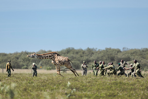 Kenya Wildlife Service (KWS) memindahkan jerapah dari Kedong Ranch di tepi Danau Naivasha, ke rumah baru mereka di Suaka Oserengoni, Kenya Timur.