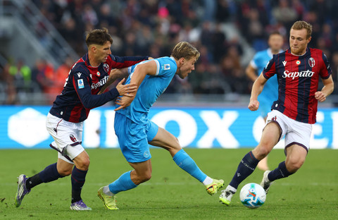 Bologna kalahkan Napoli pada pertandingan Liga Italia di Stadio Renato Dall'Ara, Bologna, Italia, Minggu (9/11/2025). Foto: Ciro De Luca/REUTERSBermain di kandang sendiri, Bologna tampil ngotot hingga mampu membuka keunggulan di menit 50 melalui Thijs Dallinga dan Jhon Lucumi di menit 66. Skor 2-0 bertahan hingga peluit panjang dibunyikan. Foto: Ciro De Luca/REUTERSAtas hasil pertandingan tersebut, Napoli menempati urutan dua dengan 22 poin, sedangkan Bologna berada di peringkat empat dengan 21 poin. Foto: Ciro De Luca/REUTERSFoto: Ciro De Luca/REUTERS