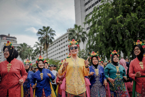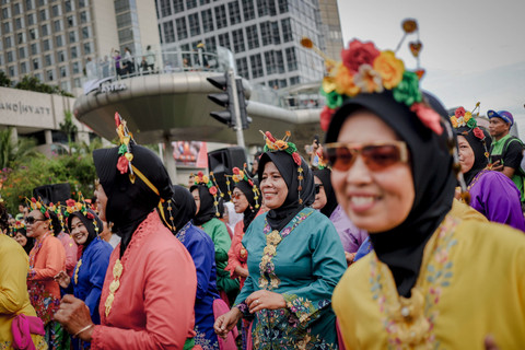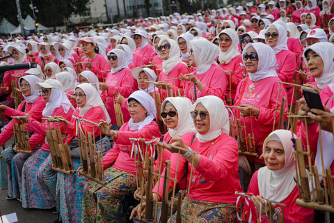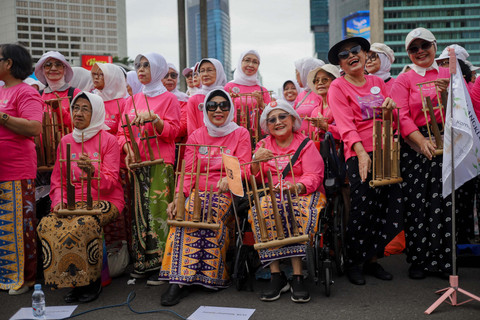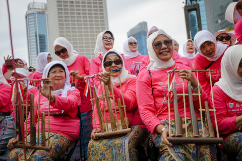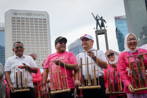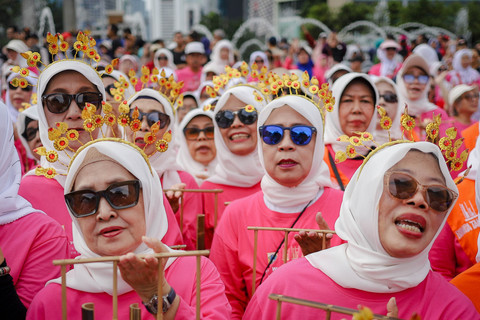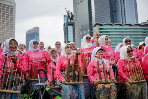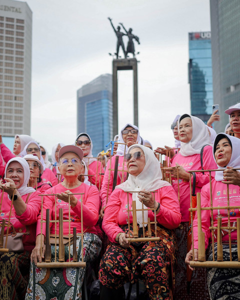 Foto: Lansia 'Sulap' Bundaran HI Jadi Pink, Mainkan Angklung Bersama
