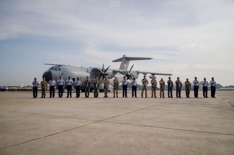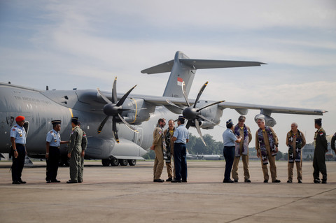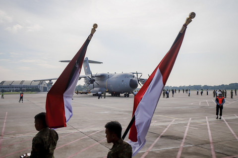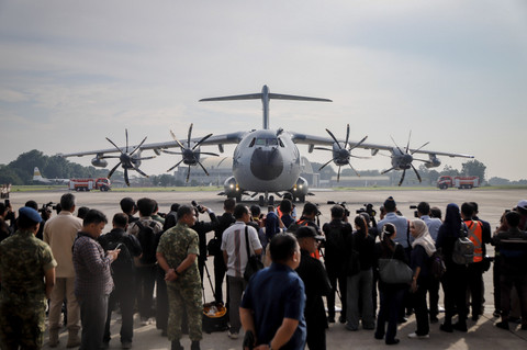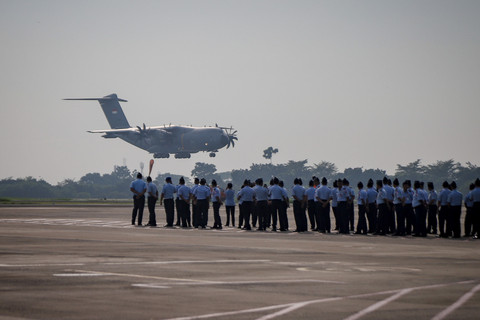 Pesawat Airbus A400M TNI AU tiba di Base Ops Halim Perdanakusuma, Jakarta Timur, Senin (3/11/2025). Foto: Jamal Ramadhan/kumparan