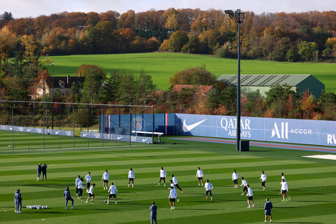 Pemain Paris Saint Germain (PSG) melakukan latihan di Kampus Paris St Germain, Poissy, Prancis, Senin (3/11) waktu setempat.