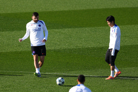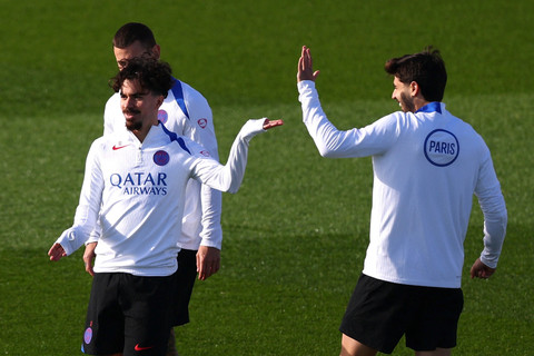 Pemain Paris Saint Germain mengikuti latihan jelang pertandingan lanjutan Liga Champions di Kampus Paris St Germain, Poissy, Prancis, Senin (3/11/2025). Foto: Gonzalo Fuentes/REUTERS