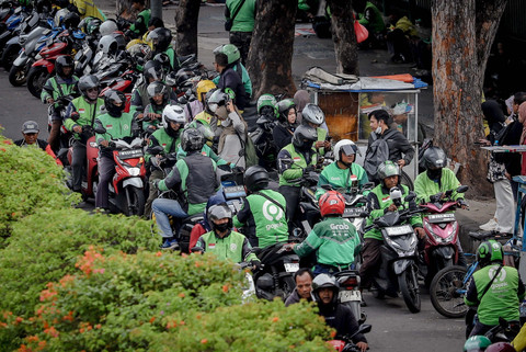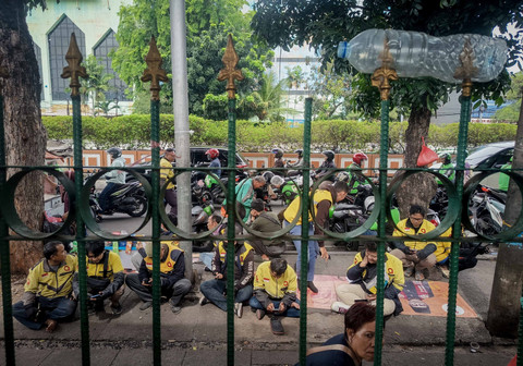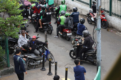 Bahkan terlihat sejumlah pengemudi ojek online duduk 'ngemper' di trotoar tepat di depan stasiun saat mangkal menanti penumpang.