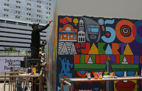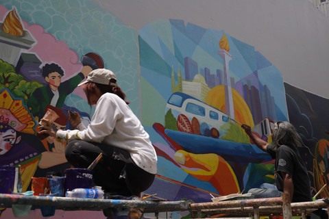 Seniman menggambar mural dalam Jakarta Mural Festival 2025 di kompleks Taman Ismail Marzuki (TIM), Cikini, Jakarta, Minggu (16/11/2025). Foto: Jamal Ramadhan/kumparanSebanyak 20 finalis dari 109 pendaftar mengikuti ajang kompetisi yang bertajuk Jaga Jakarta dalam rangka menyongsong 500 tahun Kota Jakarta sekaligus memeriahkan HUT Ke-57 Pusat Kesenian Jakarta, Taman Ismail Marzuki. Foto: Jamal Ramadhan/kumparanBerbagai tema spesifik, seperti penanda kota, budaya, dan gambaran sosial, dituangkan dalam mural oleh para seniman ini. Foto: Jamal Ramadhan/kumparanFoto: Jamal Ramadhan/kumparanFoto: Jamal Ramadhan/kumparanFoto: Jamal Ramadhan/kumparanFoto: Jamal Ramadhan/kumparanFoto: Jamal Ramadhan/kumparanFoto: Jamal Ramadhan/kumparanFoto: Jamal Ramadhan/kumparan