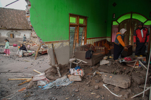 Tampak beberapa rumah terlihat hancur akibat terdampak erupsi dari letusan Gunung Semeru tersebut.