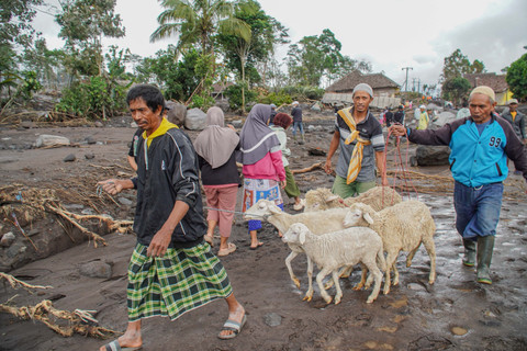 Warga mengevakuasi barang dari rumahnya yang terdampak erupsi Gunung Semeru di Desa Supiturang, Lumajang, Jawa Timur, Kamis (20/11/2025). Foto: Irfan Sumanjaya/ANTARA FOTO