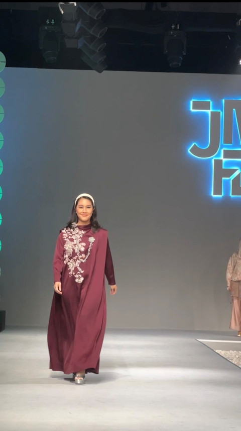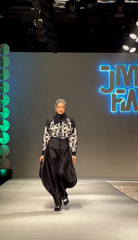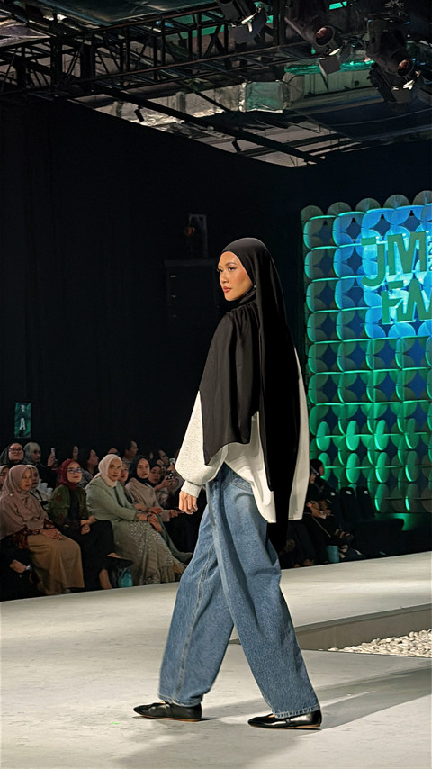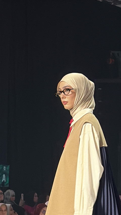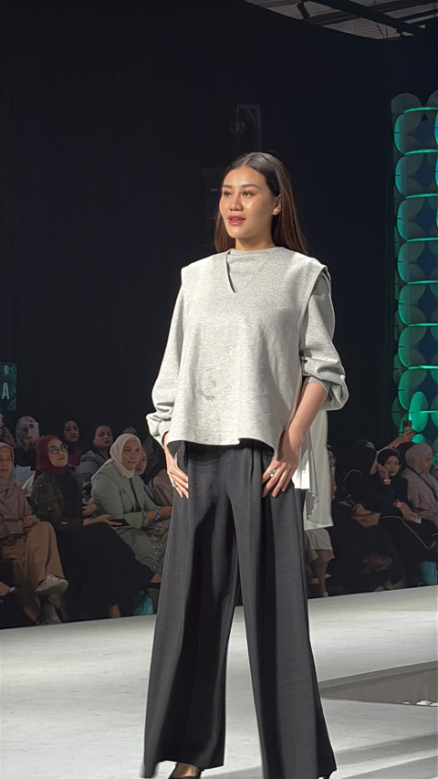 Tampil sebagai pembuka peragaan busana, Saba Modest berkolaborasi dengan IKYK menghadirkan koleksi modest fashion bernuansa kontemporer. Gaya perempuan Gen Z tercermin melalui potongan kain yang longgar, permainan layering, serta penggunaan vest pada beberapa tampilan, menciptakan kesan santai namun tetap berkarakter.