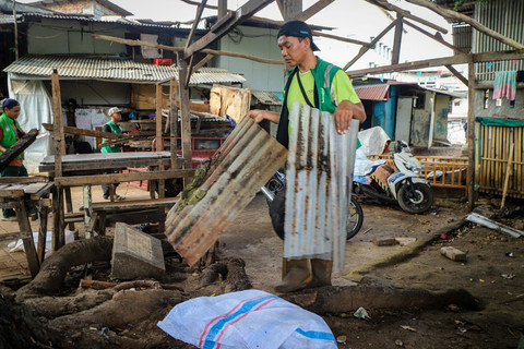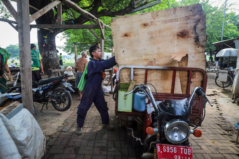 Satu-satu persatu bangunan yang berdiri di area TPU Kober dibongkar dan diangkut ke dalam motor bak.