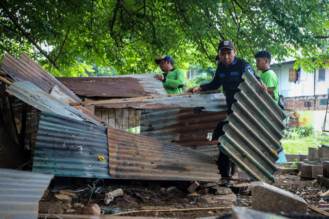 Petugas gabungan membantu warga membongkar bangunan yang berdiri di dekat Taman Pemakaman Umum (TPU) Kober Rawa Bunga, Jatinegara, Kamis (11/12/2025). Foto: Iqbal Firdaus/kumparan