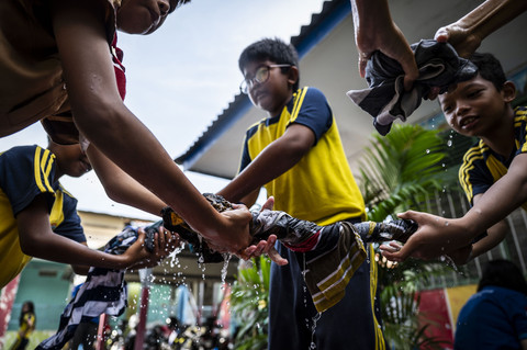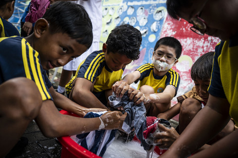 Festival Mencuci Baju yang diikuti para siswa sekolah dasar itu merupakan bentuk inisiatif pembentukan karakter yang mendorong kemandirian dan kedisiplinan generasi muda sekaligus mendukung penanaman nilai tanggung jawab. Foto: ANTARA FOTO/Aprillio Akbar