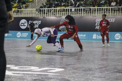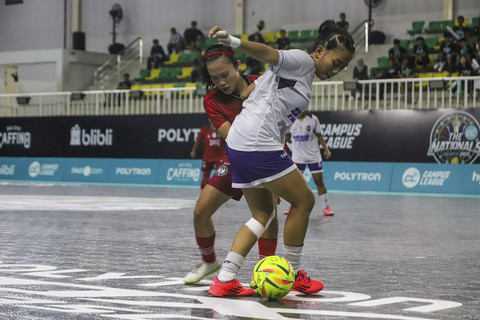 Tim futsal putri STKIP Pasundan Cimahi mengalahkan Universitas Negeri Yogyakarta (UNY) pada semifinal Campus League The Nationals 2025 di GOR UNJ, Rawamangun, Jakarta Timur, Sabtu (6/12).