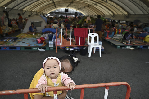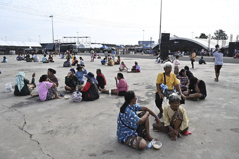 Sejumlah warga beristirahat di pusat evakuasi di Sirkuit Internasional Chang, Buriram, Thailand, Sabtu (13/12/2025). Foto: Lillian Suwanrumpha/AFP