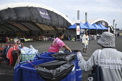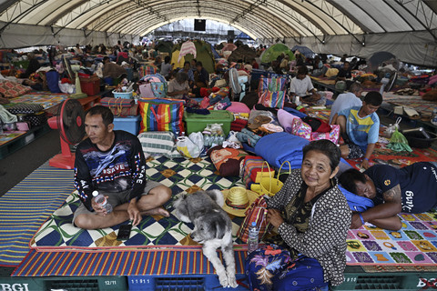 Sejumlah warga mengungsi di pusat evakuasi di Sirkuit Internasional Chang, Buriram, Thailand, Sabtu (13/12).