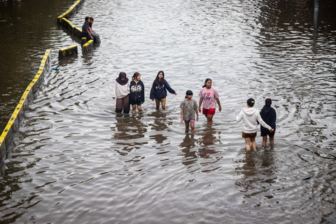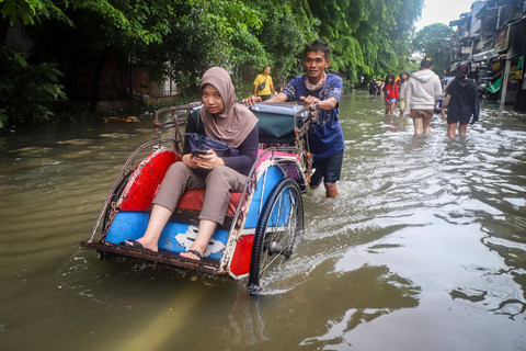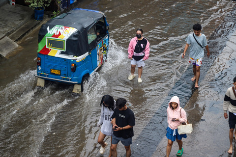 Meski demikian, aktivitas warga tetap berlangsung. Beberapa pengendara terlihat nekat menerobos genangan untuk melanjutkan perjalanan.