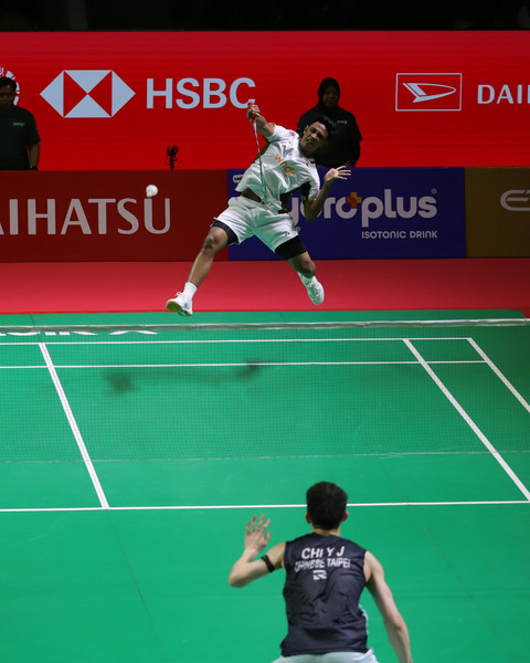 Pebulu tangkis tunggal putra Indonesia, Alwi Farhan bertanding melawan pebulu tangkis tunggal putra Taiwan, Chi Yu Jen pada semifinal Daihatsu Indonesia Masters 2026 di Istora Senayan, Jakarta, Sabtu (24/1/2026). Foto: Jamal Ramadhan/kumparan