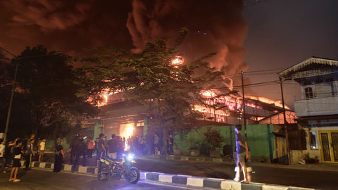 Petugas pemadam kebakaran berupaya memadamkan api yang membakar sebuah pabrik sandal di Kota Medan, Sumatera Utara, Rabu (28/1). Kebakaran tersebut terjadi pada Selasa (27/1) sekitar pukul 22.00 WIB. Foto: Yudi Manar/ ANTARA FOTOBerdasarkan informasi di lapangan, api dengan cepat membesar dan melahap sebagian bangunan pabrik, sehingga membutuhkan penanganan intensif dari petugas. Foto: Yudi Manar/ ANTARA FOTOSebanyak 20 unit mobil pemadam kebakaran dikerahkan untuk menjinakkan api, termasuk bantuan mobil water canon milik Brimob Polda Sumatera Utara. Foto: Amar Marpaung/kumparanProses pemadaman berlangsung hingga larut malam akibat besarnya kobaran api dan material pabrik yang mudah terbakar. Foto: Amar Marpaung/kumparanBelum ada laporan resmi terkait penyebab kebakaran maupun adanya korban jiwa dalam peristiwa tersebut. Foto: Amar Marpaung/kumparanKerugian akibat kebakaran masih dalam pendataan pihak berwenang. Foto: Amar Marpaung/kumparan