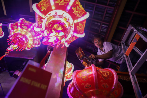 Selain mencuci rupang, warga membersihkan area klenteng serta memasang lampion dan ornamen merah khas Imlek sebagai simbol harapan dan keberuntungan di tahun yang baru.