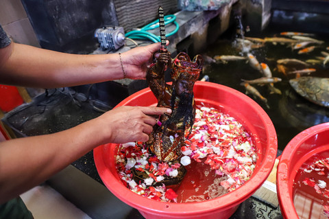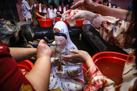 Warga keturunan Tionghoa melaksanakan tradisi pencucian rupang di Klenteng Hok Lay Liong, Bekasi, Jawa Barat, Minggu (8/2/2026). Foto: Iqbal Firdaus/kumparan