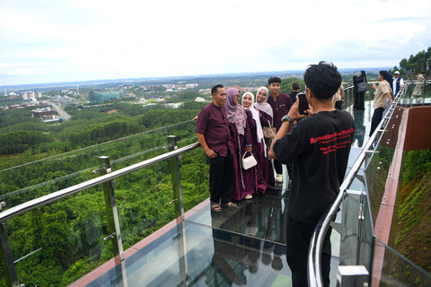 Antusiasme pengunjung terlihat dari aktivitas mereka yang berjalan santai di sekitar kawasan, hingga mengabadikan momen dengan berfoto. Salah satu titik yang menarik perhatian adalah jembatan kaca di area glamping KIPP, yang menjadi spot favorit bagi pengunjung.