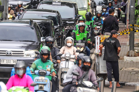 Sejumlah pengendara ojek online melintas di kawasan Kuningan, Jakarta, Rabu (4/3/2026). Foto: Iqbal Firdaus/kumparan