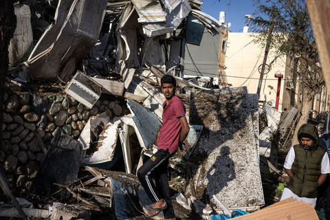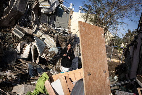Dampak serangan terlihat dari kerusakan di kawasan permukiman di Dimona pada Minggu (22/3). Sejumlah bangunan rumah warga mengalami kerusakan signifikan, bahkan dilaporkan ada yang runtuh dan terbakar akibat ledakan proyektil.