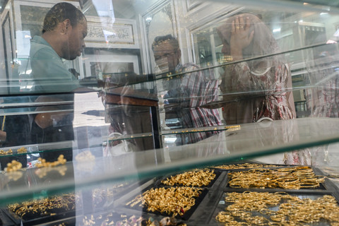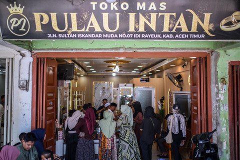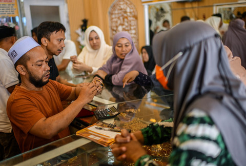 Sejumlah warga tampak mengantre untuk membeli perhiasan emas yang akan digunakan saat hari raya. Meski wilayah tersebut sebelumnya terdampak bencana, minat masyarakat untuk berbelanja tetap tinggi sebagai bagian dari tradisi menyambut lebaran.
