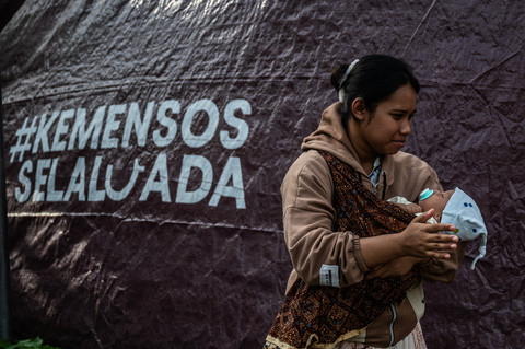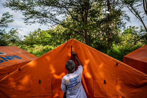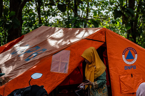 Sebanyak 60 jiwa dari 22 kepala keluarga korban bencana tanah bergerak di Kampung Sekip, Semarang telah tinggal di tenda darurat tersebut. Foto: Aprillio Akbar/ANTARA FOTO